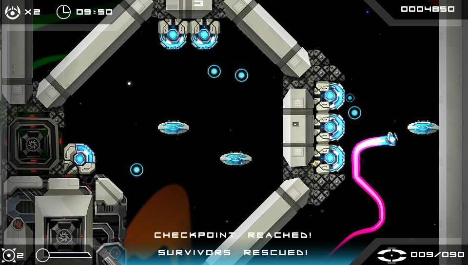 In 2212 the distant star Vilio exploded into a red giant, sending an electromagnetic pulse surging into our deep space mining ships, colony cruisers and Special Forces fighters. Now the star is beginning to collapse into a black hole, pulling our stranded fleets to their doom. To make things worse, our warring neighbors have deployed scavengers to prey upon our people. Only one craft is capable of a rescue mission, the Quarp Jet — a spacecraft capable of teleportation.